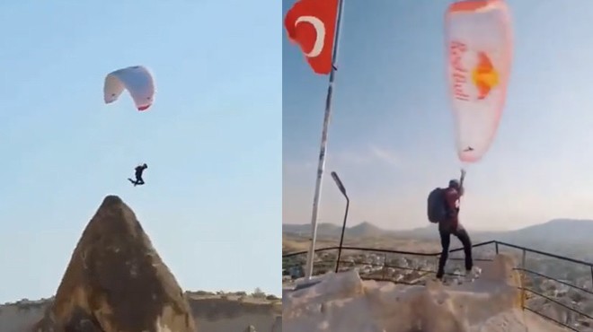 Speedflying’te dünyanın en iyilerinden biri olarak kabul edilen Fransız sporcu Valentin Delluc, Peri Bacaları'nda nefes kesen bir gösteri gerçekleştirdi.