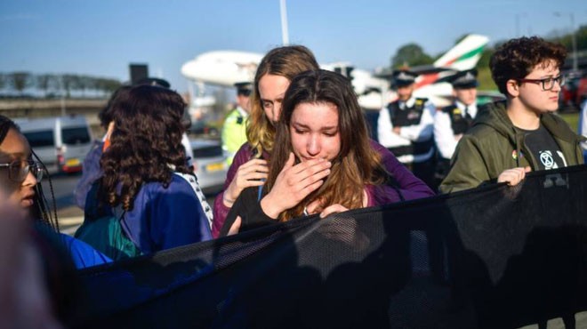 Havalimanına çıkan yollarda protesto gösterileri düzenleyen çevre aktivistleri ellerinde "Son nesil miyiz?" yazılı pankartlar taşıdı. Heathrow, Londra'nın ve Avrupa'nın en işlek havalimanı.