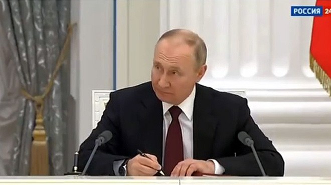 ??? Putin "Donetsk ve Lugansk Hallk Cumhuriyetlerinin" bağımsızlığını tanıyan ferman imzalıyor pic.twitter.com/YXL1WlTDJO