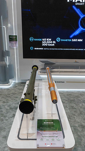 Roketsan, Dubai Airshow 2025’te, SİHA mühimmatları grubundan MAM-L IIR, MAM-T IIR ve İHA-230 Havadan Karaya Balistik Süpersonik Füzesini, anti-tank sistemlerinden CİRİT Lazer Güdümlü Füzesini, seyir füzelerinden Stand-off Mühimmatı SOM ve ÇAKIR Seyir Füzesini, hava savunma sistemlerinden SUNGUR Hava Savunma Füze Sistemi ve SİPER Uzun Menzilli Bölge Hava ve Füze Savunma Sistemi Blok-1 Füzesini, hassas güdümlü mühimmatlarından ise TEBER Güdüm Kitini sergiliyor. Ayrıca Roketsan, yeni nesil savunma sistemlerinden biri olan ALKA Yönlendirilmiş Enerji Silah Sistemini ve uzay sistemlerinden ŞİMŞEK-1 Uydu Fırlatma Aracını da fuar katılımcılarının beğenisine sunuyor.