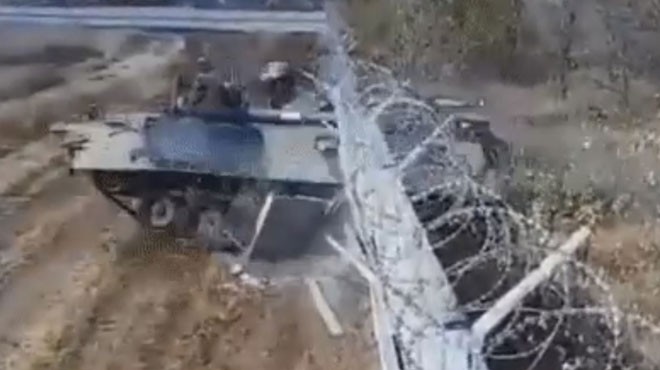 Sosyal medyada viral olan videoda, bir BMP-3 piyade aracı, Rusya'nın güneybatı bölgesindeki Volgograd Uluslararası Havaalanı'nı çevreleyen dikenli tellerle kaplı duvara yaklaşıyor. Burada durmayan zırhlı araç duvarı delerek içinden geçiyor.