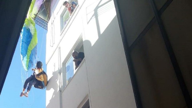 Alanya’da tatil yapan Rus turist Anna Levitova, Yassı Tepe’den saat 12.00 sıralarında yamaç paraşütüyle havalandı. Tekli uçuş yapan Levitova, iniş için alçaldığı sırada rüzgarın da etkisiyle paraşütün kontrolünü kaybetti. Kızlarpınarı Mahallesi Fatih Sokak’ta bir binanın çatı demirlerine paraşütü asılı kalan Levitova’yı görenler, 112’yi aradı.