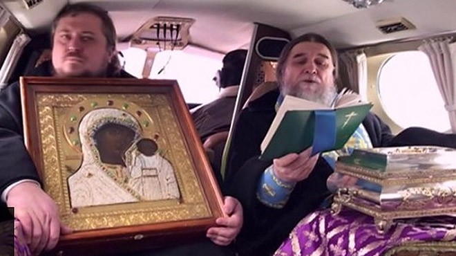 Rus Ortodoks Kilisesi'ne mensup iki rahip, ülkenin batısındaki Yaroslavl bölgesinin üzerinde uçakla tur atıp, koronavirüse karşı dua etti.