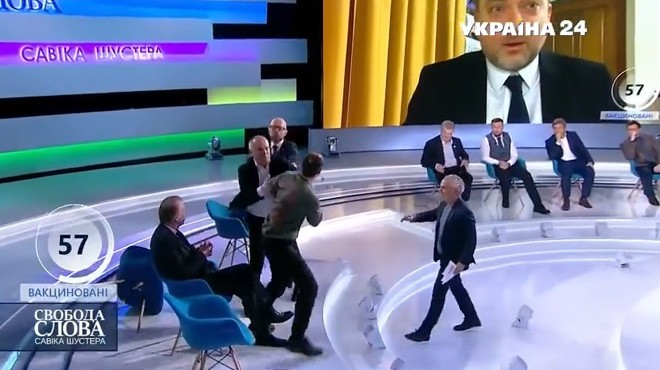 Programda Putin’i öven Ukraynalı milletvekili Nestor Shufrych, gazeteci Yuriy Butusov'un saldırısına uğradı. Hiç beklemediği bir anda gazetecinin tokadına maruz kalan milletvekili neye uğradığını şaşırdı. Ayağa kalkan Putin yanlısı milletvekili gazeteciyi boğazından tutarak karşılık verdi. İkiliyi diğer konuklar güçlükle ayırdı. Programın izleyicileri ise olan biteni neredeyse tepki vermeden izledi.