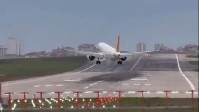 Pegasus Hava Yolları’na ait Airbus A321 tipi uçak, Sabiha Gökçen Havalimanı’na son yaklaşmada piste inmeye hazırlanırken, şiddetli yan rüzgar nedeniyle pas geçti. Pilotlar motorlara tam gaz vererek inişten vazgeçti.