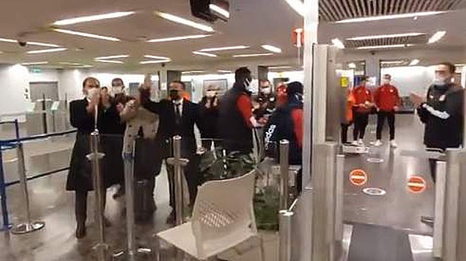 Maccabi Tel-Aviv maçının ardından Sivas'a dönmeye hazırlanan kafilemiz havalimanında mahsur kaldı. İsrail yetkileri sistemi ve geçişleri kapatarak kafilimize her türlü zorluğu çıkartıyor. @RTErdogan @TC_icisleri @TFF_Org @EuropaLeague @sivasvaliligi @TC_Disisleri pic.twitter.com/t7cxViA1n5