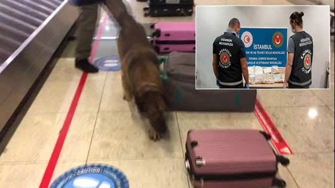 Sabiha Gökçen Havalimanı'nda şüpheli yolcuyu taşıyan uçağın alana inişi ile birlikte ekipler harekete geçti. Uçakta bulunan yolcu valizleri x-ray cihazından geçirilerek narkotik dedektör köpekler ile de kontrol edildi. Dedektör köpeklerin bir bagaja tepki vermesi üzerine, bagaj açıldı.