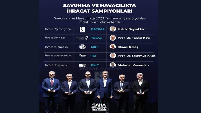 BAYKAR Teknoloji Genel Müdürü Haluk Bayraktar'ın da basına kapalı gerçekleşen konuşmasının ardından savunma ve havacılıkta 2023 ihracat şampiyonları olan ilk 5 firma, BAYKAR Makina, TUSAŞ, MKE AŞ, TEI ve BMC'ye ödülleri Cumhurbaşkanlığı Savunma Sanayii Başkanı Prof. Dr. Haluk Görgün tarafından verildi.