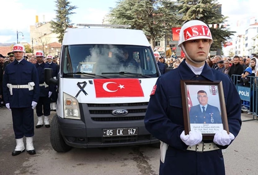 Azerbaycan-Gürcistan sınırında düşen askeri kargo uçağında şehit olan 40 yaşındaki Hava Uçak Bakım Astsubay Başçavuş Hamdi Armağan Kaplan, memleketi Amasya'nın Gümüşhacıköy ilçesinde son yolculuğuna uğurlandı. Buradaki törende şehidin ailesi ve yakınları tabuta sarılarak gözyaşı döktü.
