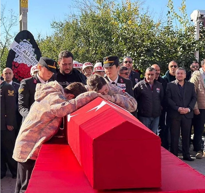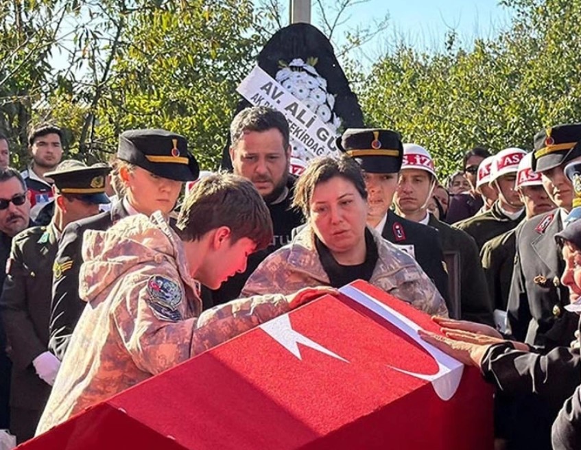 Gürcistan-Azerbaycan sınırında düşen askeri kargo uçağında şehit olan askerlerden Hava Uçak Bakım Astsubay Başçavuş İlker Aykut (39), memleketi Tekirdağ'ın Muratlı ilçesinde gözyaşlarıyla son yolculuğuna uğurlandı. Şehidin parkasını giyen eşi Duygu, oğlu Poyraz, Türk bayrağına sarılı tabuta sarılarak gözyaşı döktü.