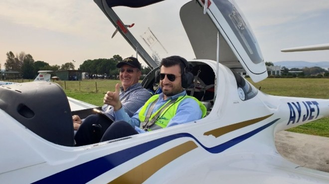 Selçuk Bayraktar, Diamond DA20-C1 tipi iki kişilik eğitim uçağında eşi Sümeyye Erdoğan Bayraktar ve kızı Canan Aybüke Bayraktar ile birlikte hatıra fotoğrafı çektirdi.