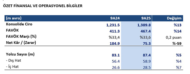 Çeşitlendirilmiş portföy yapımız, sürdürülen ticari iyileştirmeler ve temkinli sermaye tahsisi yaklaşımımız olası krizlere karşı dayanıklılığımızı pekiştiriyor. Döviz kurlarındaki dalgalanmaları ve jeopolitik gelişmeleri yakından takip ederken; operasyonel mükemmellik, yolcu deneyimi ve değer odaklı büyüme stratejilerimizi önceliklendiriyoruz. Tüm çalışanlarımıza, hissedarlarımıza ve iş ortaklarımıza en içten teşekkürlerimi sunuyorum” dedi.