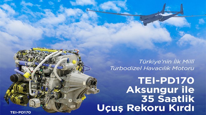 TEI tarafından tasarlanan ve üretilen, Türkiye’nin ilk millî turbodizel havacılık motoru TEI-PD170, TUSAŞ’ın AKSUNGUR İHA’sıyla gerçekleştirdiği kesintisiz 35 saatlik uçuşuyla birlikte, millî bir havacılık motoru ile ulaşılan en uzun uçuş süresi rekorunu kırdı.