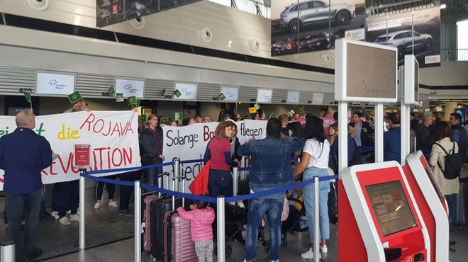 Frankfurt Havalimanı'nda gösteri yapıp, Türk Hava Yolları (THY) işlem gişesini işgal eden terör örgütü yandaşları, kendilerine tepki gösteren Türk yolculara saldırdı.