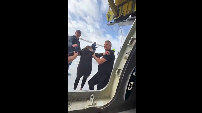 Büyük şok yaşayan yolcular soğuk kanlığını koruyan kabin ekibi tarafından böyle tahliye edildi.