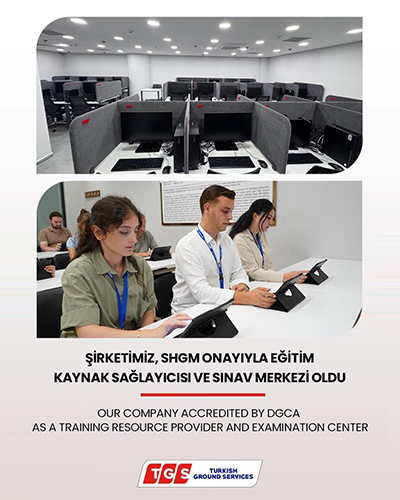 Eğitim ve gelişimi kurumsal başarının temel unsuru olarak gören TGS Yer Hizmetleri A.Ş.’nin EKS ve Sınav Merkezi yetkisinin, şirketimize ve havacılık sektörüne hayırlı olmasını dileriz.” denildi.