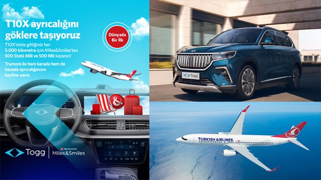 Türkiye’nin mobilite alanında hizmet veren küresel teknoloji markası Togg ile bayrak taşıyıcı Türk Hava Yolları iş birliğiyle T10X kullanıcıları, karayolunda da Statü Mili kazanıyor. Trumore Dijital Premium Paket sahibi T10X kullanıcıları, Türk Hava Yolları Yolcu Programı Miles&Smiles ile her 5 bin kilometre için 500 Statü Mili ve 500 Mil elde ediyor.
