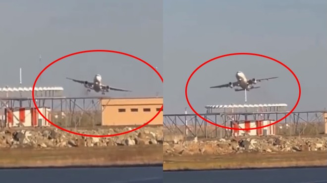 İnişin tehlikeli olacağına karar veren pilotlar, motorlara tam güç vererek pas geçti.