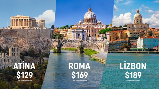 Dünyanın en çok ülkesine uçan hava yolu olan Türk Hava Yolları, İstanbul ve Ankara’dan; Fransa, İspanya, İtalya, Yunanistan, Portekiz ve Malta’daki 24 uçuş noktasına uygun fiyatlarla seyahat imkânı sunuyor.