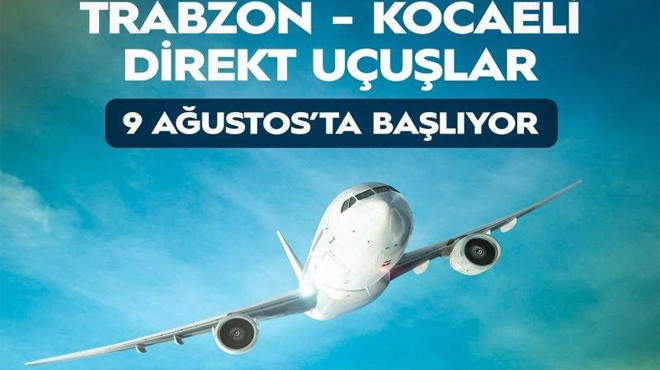 “Sıradaki Bilet: Trabzon-Kocaeli Seferleri. 9 Ağustos itibariyle Trabzon-Kocaeli direkt uçuşlarını başlatıyoruz. İlk sefer 9 Ağustos’ta;
