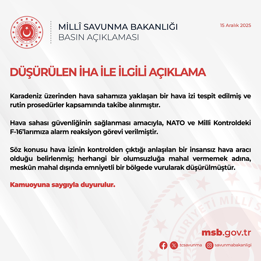 Milli Savunma Bakanlığı’nın X hesabından ‘Düşürülen İHA ile ilgili açıklama’ denilerek şu açıklama yapıldı: