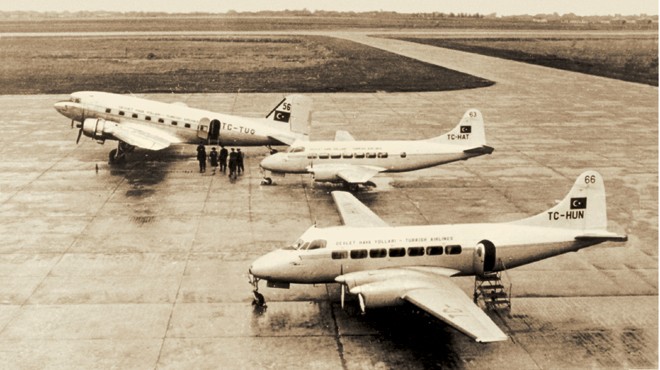 Operasyonlarına ilk olarak, “Devlet Hava Yolları İşletmesi” adıyla İstanbul Atatürk Havalimanı‘nda (eski adıyla Yeşilköy Havalimanı) başlayan Türk Hava Yolları, 1943- 1945 yılları arasında filosuna kattığı yeni uçaklarla bugünkü başarının temellerini attı. Yolcu kapasitesinin ve hedeflerin büyümesiyle birlikte, bayrak taşıyıcı ilk yurtdışı seferini 1947 yılında, Ankara – İstanbul – Atina hattında gerçekleştirdi. TC-ABA tescil kodlu DC-3 uçağı ile gerçekleştirilen uçuş toplamda 2 saat 40 dakika sürdü. Türk Hava Yolları ilk Atina seferinden 4 yıl sonra, 1951 yılında Lefkoşa, Beyrut ve Kahire ile uluslararası uçuş noktalarını genişletti.