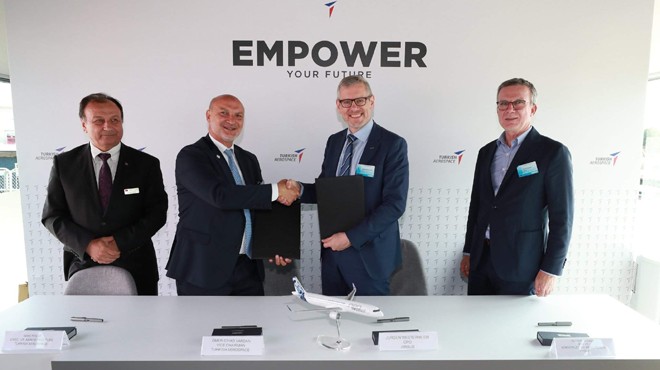 Türk Havacılık ve Uzay Sanayii ve Airbus arasında 3 yeni iş birliği anlaşması imzalandı. İmzalanan sözleşme, A350F’in bariyer duvarı, A320 serisi 18 ve 19 kısım birleşimi ile birlikte A220 serisi Orta Alt Gövde Panellerini kapsayacak.