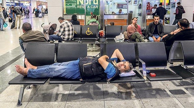 Bayram Tepeli, her akşam Sabiha Gökçen Havalimanı İç Hatlar Gelen Yolcular çıkışında bulunan koltukların üzerinde yatıyor. Akşam 23.00’te havalimanına giriş yapan Tepeli, yatacağı koltukların üzerini ıslak mendille iyice temizliyor. Sonra terliklerini çıkarıp poşete koyuyor. Poşetteki terliklerini yastık olarak kullanıyor. Tepeli’nin yanından ayırmadığı çalar saati onu her sabah 07.00’de uyandırıyor.
