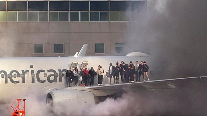 Yolcular canlarını kurtarmak için kabin memurlarının yönlendirmesiyle uçağın kanadına çıktı ve kurtarılmayı bekledi...